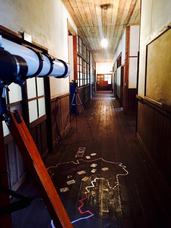 足尾町にアーティスト・イン・レジデンスで滞在期間中、地域住民と交流する中で、足尾を近くに感じる瞬間がありました。まるで、この町の一員なったような感覚。同時に、これ以上入り込めない距離を感じたこともありました。距離があるのに近くに見える、近くに見えても距離がある、まるで望遠鏡から見える景色みたいだなぁ、そんな気づきが具現化した形の展示となりました。