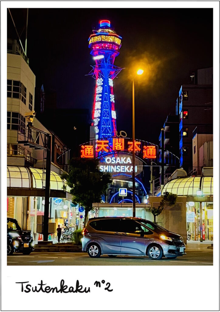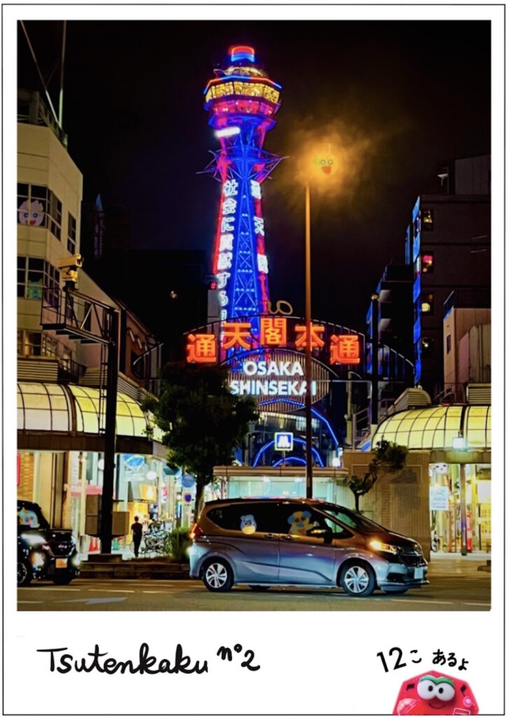 夜の通天閣もライトアップされてて素敵でした。こちらは背伸びして撮影。