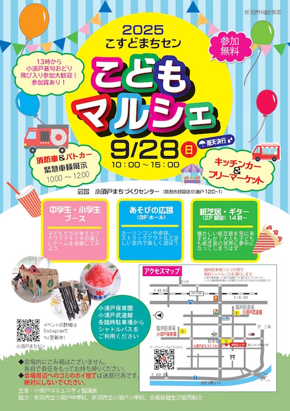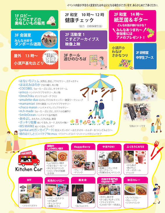 7月下旬、小須戸ARTプロジェクト実行委員会とのオンラインミーティングで、こどもがあまり多くない地域であるとのご説明があり、今回のワークショップ開催には少し不安がありました。しかし、小須戸まちづくりセンター主催のマルシェは、こすどっ子と近郊のこども達が毎回楽しみにしているとのことで、こどもと親子で大盛況でした!