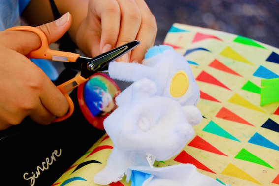 さすが小学校中学年以上。ハサミも上手!完成したおたすけキーホルダーを早速バックに付けてくれました!嬉しい!!