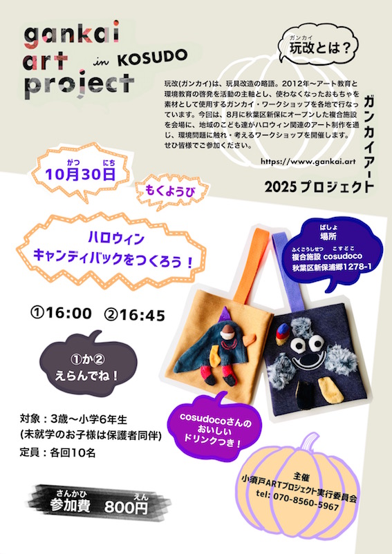 そうして辿り着いたが、小須戸まちづくりセンターさんでした。しかも、ちょうど9月に地域のこどもを対象としたイベント「こどもマルシェ」が開催されるとの事。これには運命を感じ、直ぐにコンタクトを取り、9月28日(日)にガンカイ・ワークショップ開催が決定しました。