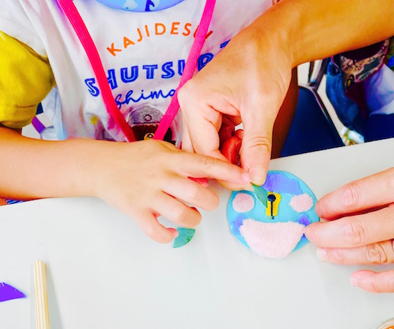 ミニ展示も行いました。5月に渋谷のGallery Concealにて展示した玩改動物(ガンカイどうぶつ)たちも連れてきました。女の子だけでなく、小学生の男の子も興味を持ってくれて、フワちゃ(首を傾げたピンクの動物)を「この子、かわいい!」と言ってずっとなでなでしてくれてました!